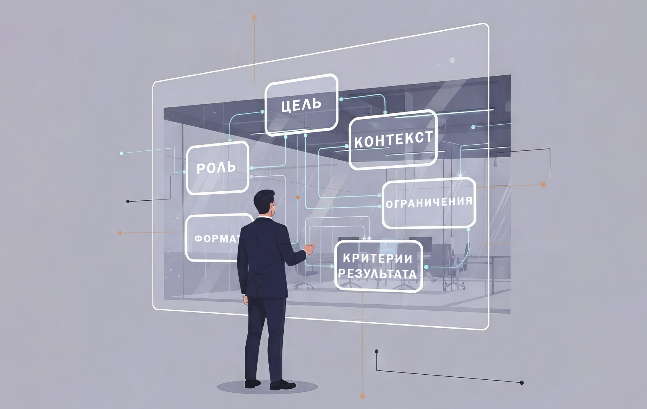 Составляя правильные промты для нейросети, мы разрабатываем инструкции – четкий алгоритм, который дается машине. Представьте, что вы нанимаете нового удаленного сотрудника. Вы объясните, что нужно сделать, для кого, в каком формате и каким тоном. Вот и структура промта работает ровно так же – это карта, которая не позволяет нейросети заблудиться в дебрях абстракций.